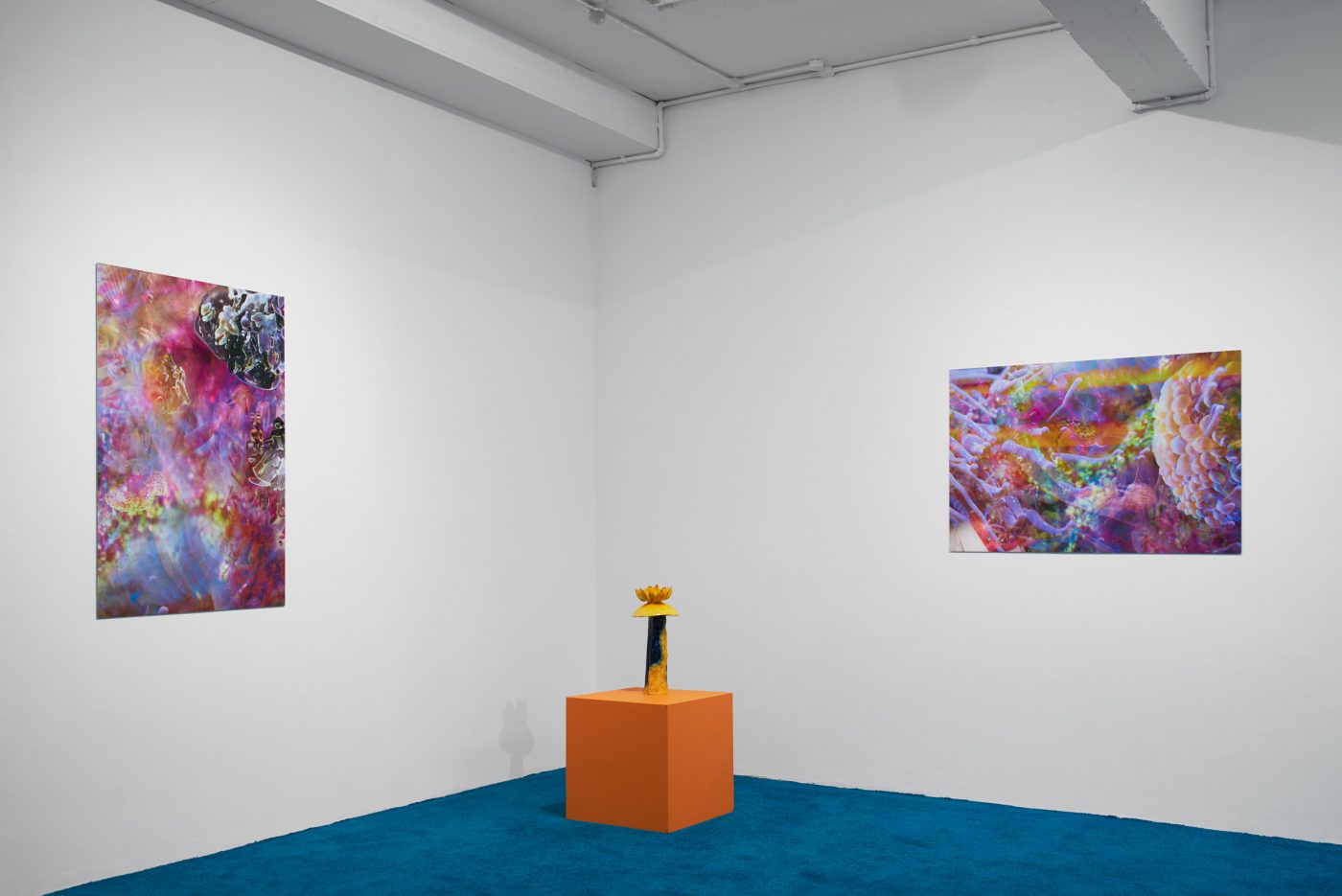 In Molecular Genealogies, her first solo exhibition at NıCOLETTı, London, Ntjam explores the history and future of emancipatory movements by weaving multiple narratives drawn from African mythology, ancestral rituals, the wars of independence in Cameroon, Algeria and Burkina-Faso, anti-racist activism in the US, as well as her personal and family archives. Through a newly commissioned series of sculpture, photomontage, film and sound, Ntjam reassesses the genealogies of these stories and events in light of research into molecular biology and quantum physics that she pursued with the Arthur B. McDonald Canadian Astroparticle Physics Research Institute at the Agnes Etherington Art Centre, Ontario, in Jan–Apr 2021. The resulting artworks tell a story of co-dependency between science, history and fiction, conflating microscopic views of plants and rocks with ancient deities and political activists within a display that Ntjam conceived as a futuristic ‘maquis’ – the scrublands or jungles where resistance fighters escape the forces of power by mimicking natural elements and blending in with their environment.