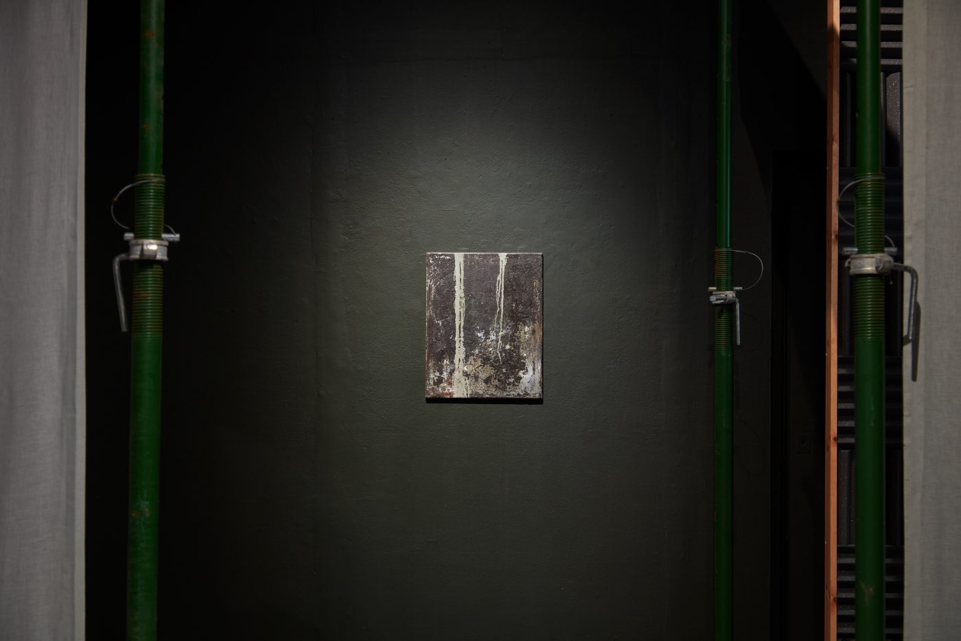 Following into the second room, two additional paintings by Johnson reflect the artist’s interest in urban landscapes. Entitled Glory Road and Paving in the Rain, these two paintings stem from daily walks the artist takes in New York, a practice whereby he observes and records the rhythmic pulsations of his immediate surroundings while attempting to excavate the memories buried in the walls and grounds of the city.