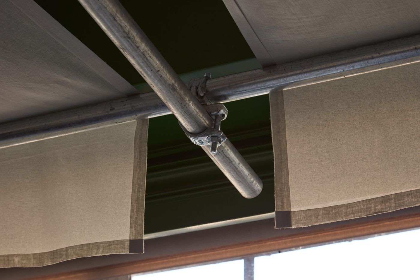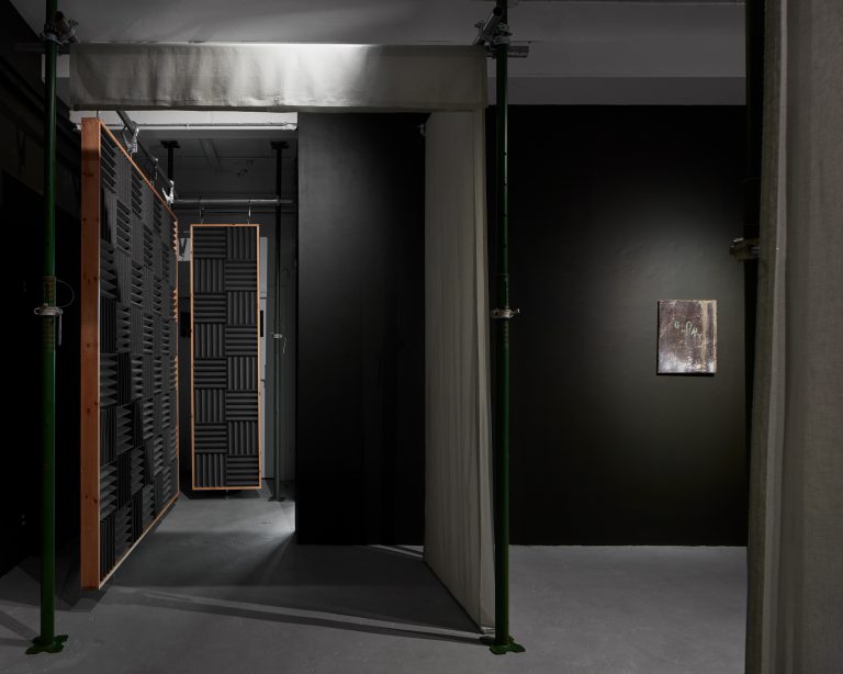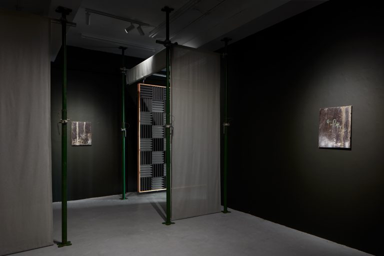 Led by Whitley Esteban of Studio Tre, the exhibition design weaves a framework of architectural interventions upon which the layering of identities, ideas, and histories inscribed in the artists’ works is highlighted. The exhibition’s use of a ‘kit of parts’ prioritizes the mutability and reusability of readily available forms and materials – ultimately drawing reference to the temporary superstructures since time immemorial built, deconstructed, and built again in order to facilitate and provide shelter for artistic expression and the impulse to create.