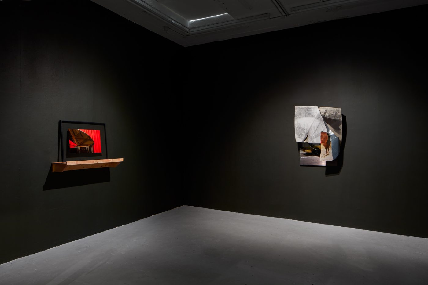 Boakye-Yiadom’s soundtrack is accompanied by two double-sided photographs of pianos taken during the recording sessions. Featuring angular, semi-abstracted perspectives of the piano on which the composition was played one one side, and details of the playlist on the reverse, Boakye-Yiadom’s photographs parallel the fractured dimension of the sound piece, highlighting the fragmentary nature of the collective spaces we inhabit.