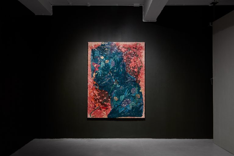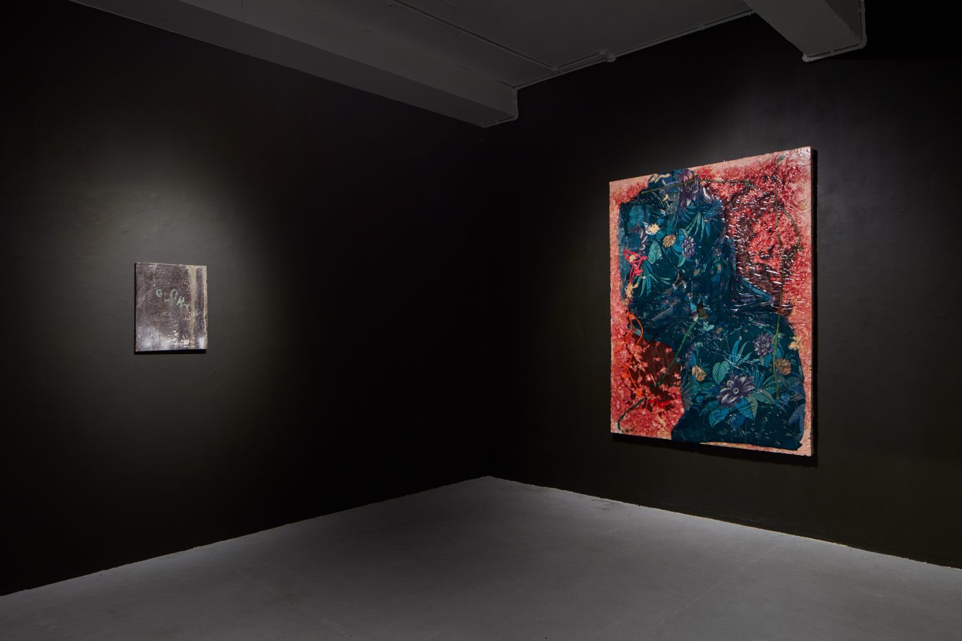 In the first room, Devin B. Johnson presents a painting representing a vocalist singing in a choir, evoking the ritualistic dimension of communal singing while musing on the beautiful and terrible histories held by the lineage of African American musical traditions. Focusing on a single figure, Johnson’s scene invokes the interstitial space between the real and the imagined, creating an emotional atmosphere that lives equally between memory and growth.