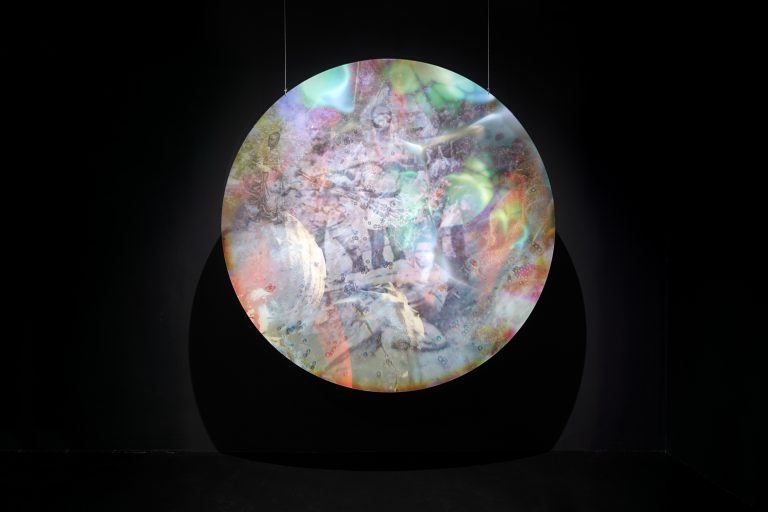 The mixing of all these elements and references suggests an alternative mode of writing History, one which considers the sometimes labyrinthine way in which time and memory operate, with unexpected twists and turns that make events and images appear, erode and ramify. By invoking a memory in a constant state of dislocation and reconfiguration, Ntam avoids essentialism to consider the connections, circulations and fractures between historical events. In so doing, the artist gives visibility to marginalised stories while imagining alternative space-times in which categories of objectivity and belief, scientific observation and artistic speculation, would no longer be opposed – space-times which contain, in the depth of their abyss and galaxies, the matrix of revolts and revolutions yet to come.