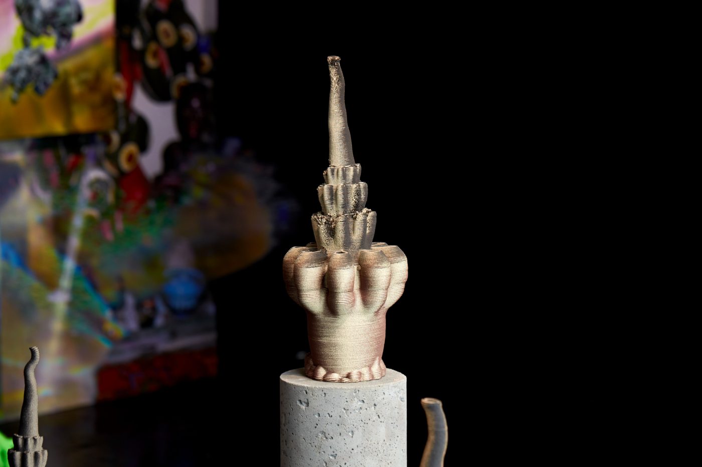 Ntjam’s work is part of a number of public collections, including MAMC+ – Musée d’art moderne et contemporain de Saint-Etienne, FR; Centre national des arts plastiques (Cnap), Paris, FR; Fonds d’art contemporain – Paris Collections, FR; Fondation Villa Datris, L’Isle-sur-la-Sorgue, FR; FRAC MECA Nouvelle-Aquitaine, Bordeaux, FR; FRAC Auvergne, Clermont-Ferrand, FR; FRAC Alsace, Sélestat, FR; EIB Institute, Luxemburg; and Artothèque de Strasbourg, FR.