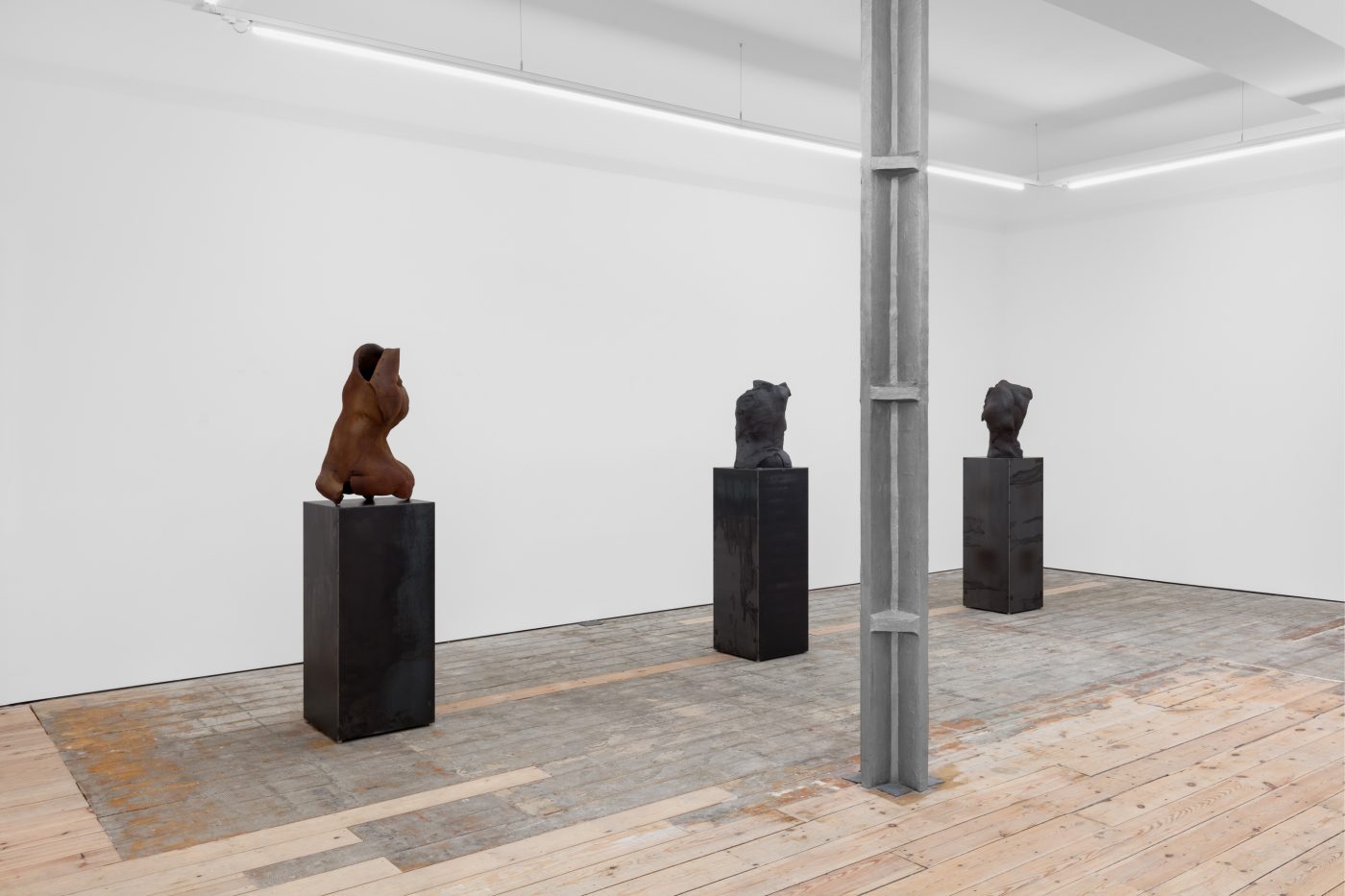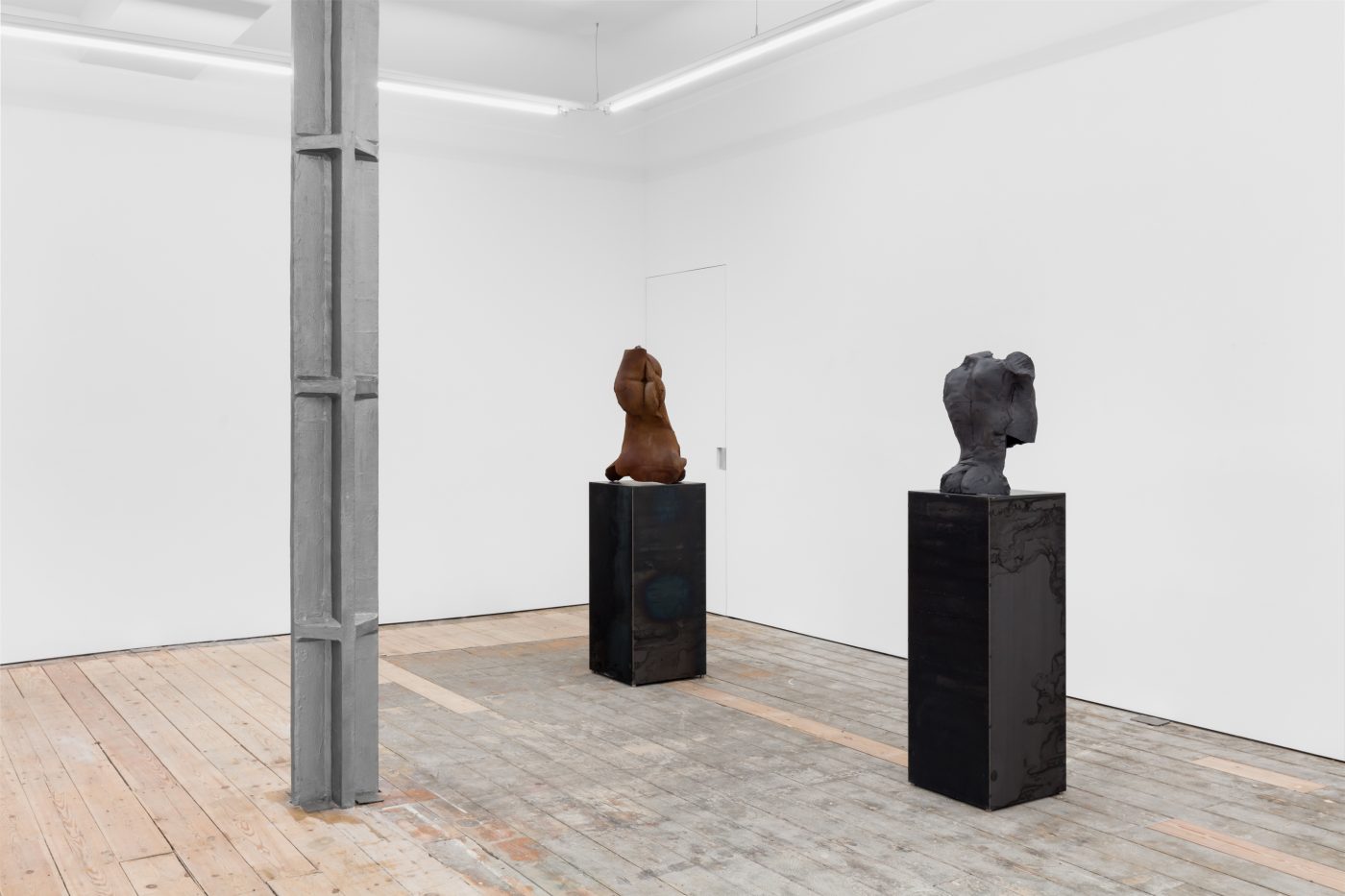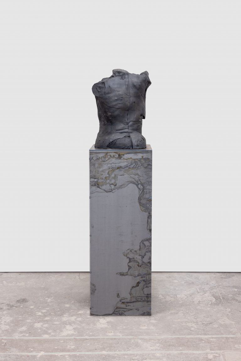 Displayed on stainless steel plinths arranged in a manner reminiscent of classical museography, Servanin’s sculptures attempt to rework, from within, the notion of the ideal body in Western sculptural traditions. Here, if the artist borrows the techniques and visual language of classical sculpture, he presents us with indiscernible, chimeric entities, in both mythological and biological sense, in which a chimera refers to organisms containing cells and tissues from different sources, formed by processes such as fusion, grafting and mutation. In so doing, Servanin invites us to contemplate a form of post-humanism composed of ambiguous, dissident bodies: non-normative corporealities engaged in constant processes of alteration and diversification that resist systems of control, discipline and assignation.