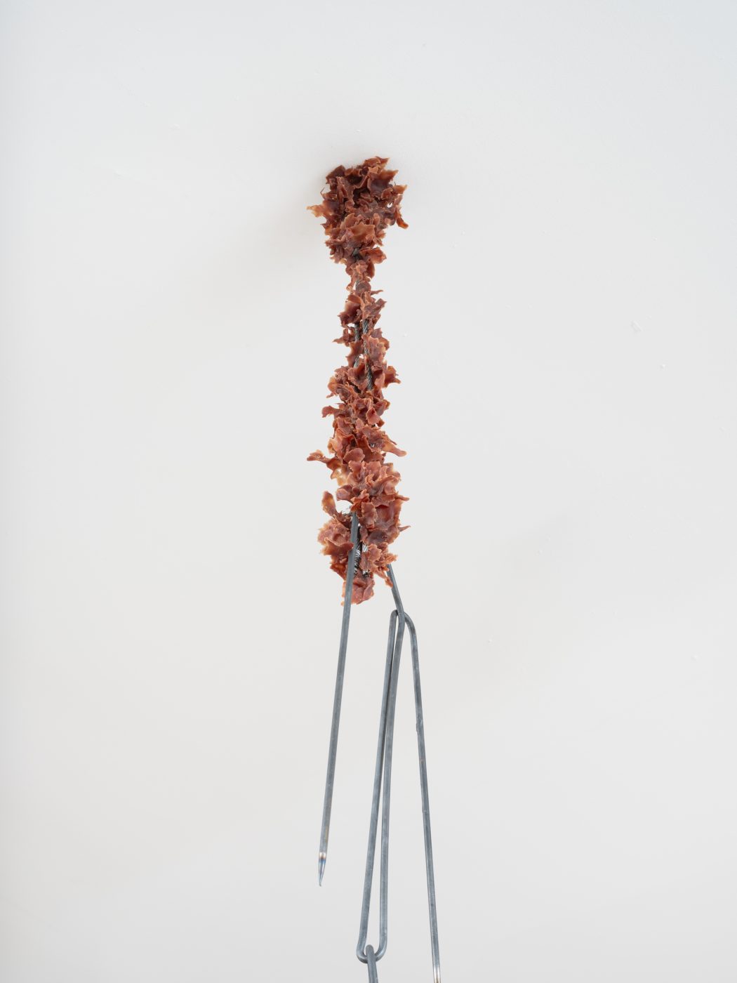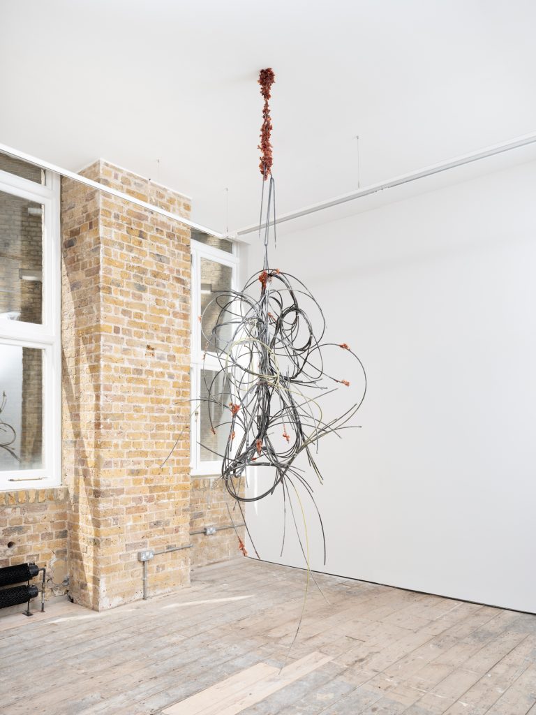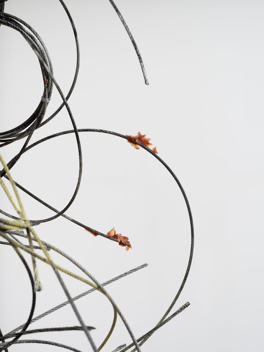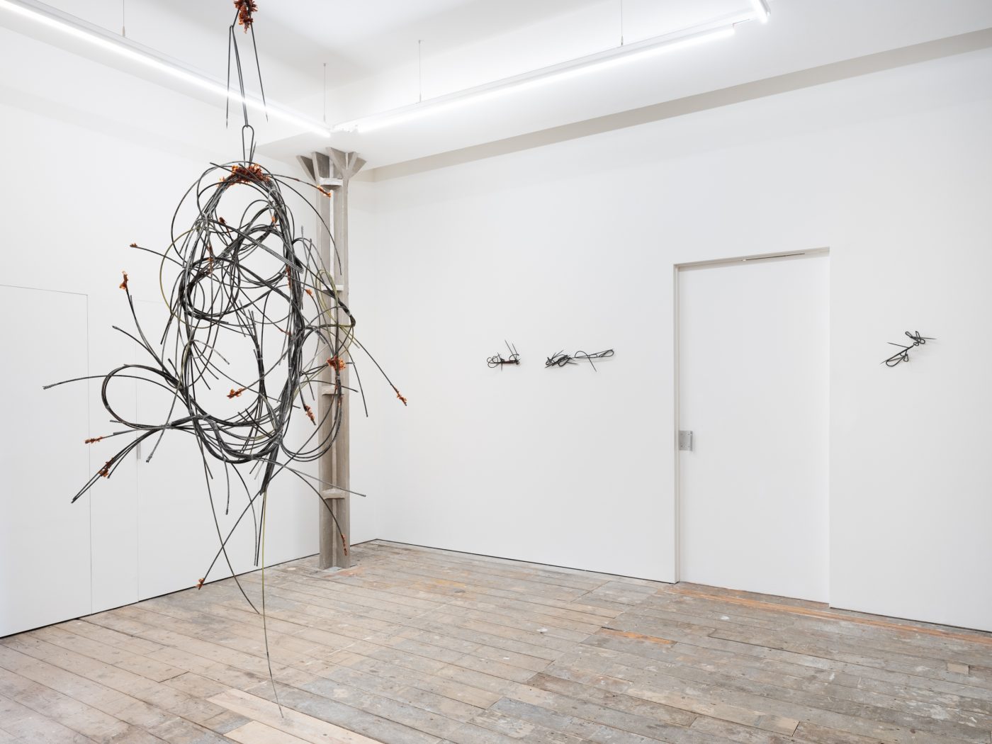 In Intent, these dualities are expressed through a series of sculptures composed of sanded and twisted spikes that form intricate knots. While their sharp edges convey feelings of threat and hostility, their rusted surfaces and serpentine curves imbue the works with a sense of fragility and vulnerability. Giving the impression of illegible words or convoluted signatures, these works are less seeking to resolve conflicting sensations than give a form to the very idea of paradox, exposing the contradictions that structure existence through contorted yet fluid shapes.