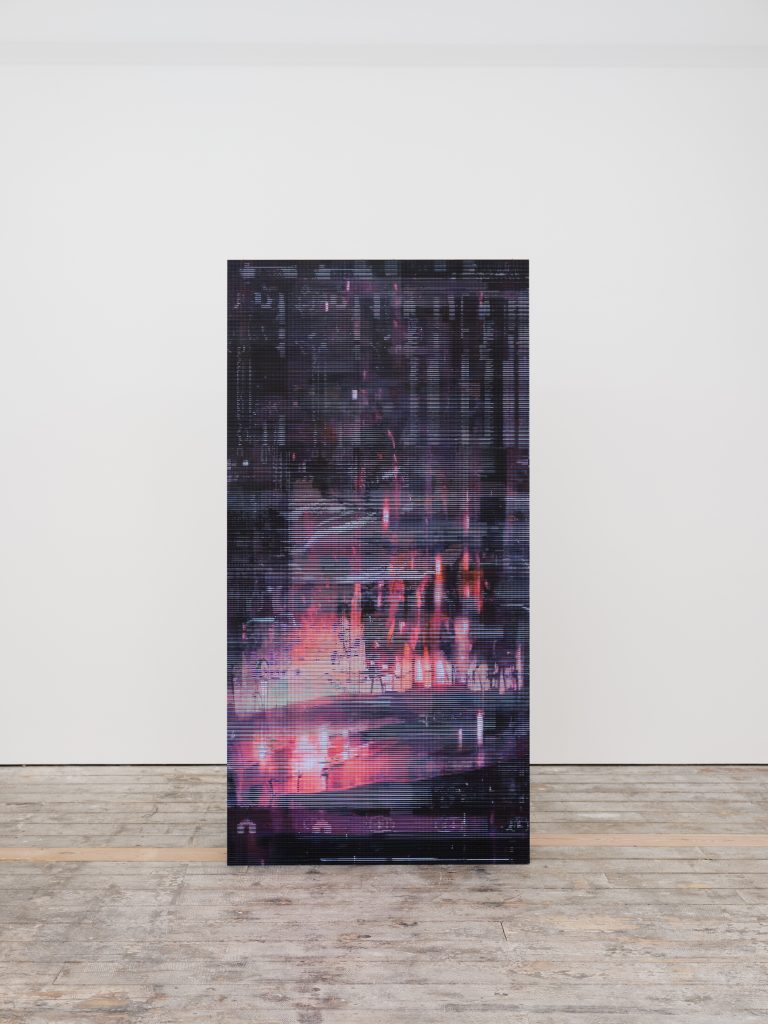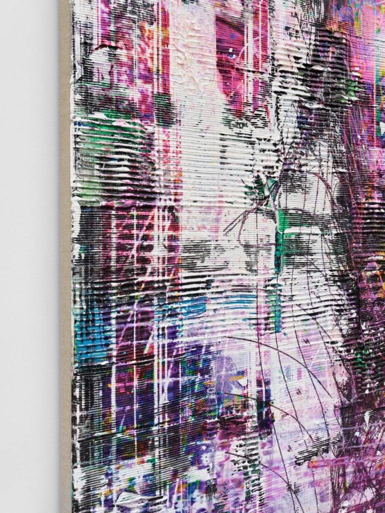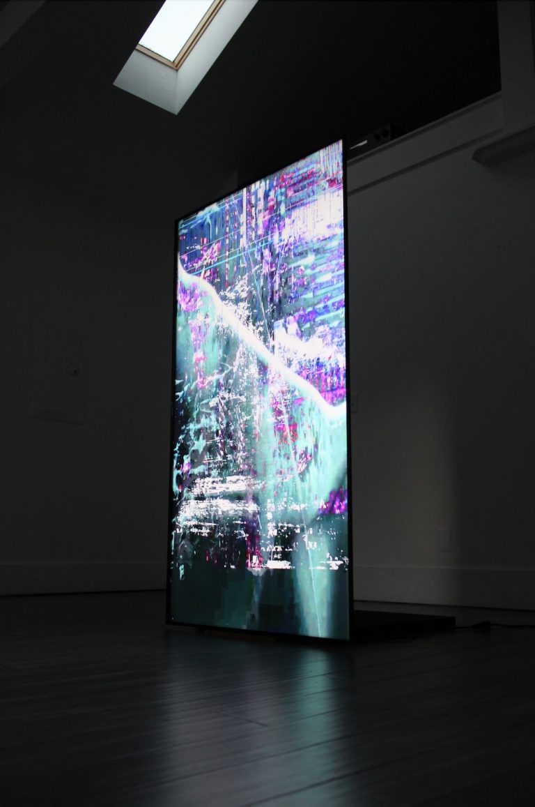 Chris Dorland is a Canadian/American artist working at the intersection between painting and new media. His studio practice is based on the establishment of a dialogue between analog and digital techniques, through which the artist analyzes the ramifications of human modes of perception and existence within contemporary societies of control. With a particular emphasis on examining the ways in which surveillance technologies perceive, record and reproduce reality, Dorland uses a variety of screens, drones and other optical devices to compose images that explore the increasingly tenuous boundaries between physical and digital environments, actual and virtual realities. The distorted and glitching imagery of his paintings, digital collages and films addresses the unresolved tension between technological utopia and post-capitalistic chaos, evoking a dystopian vision of the human-built world through the sublimated violence of abstraction, consumerism and technology.