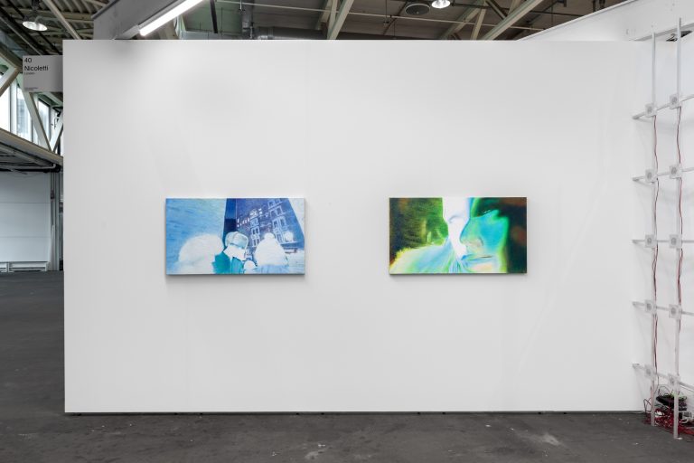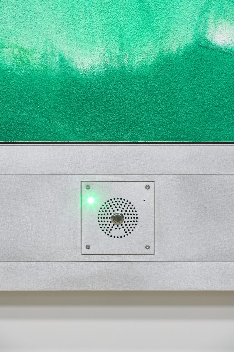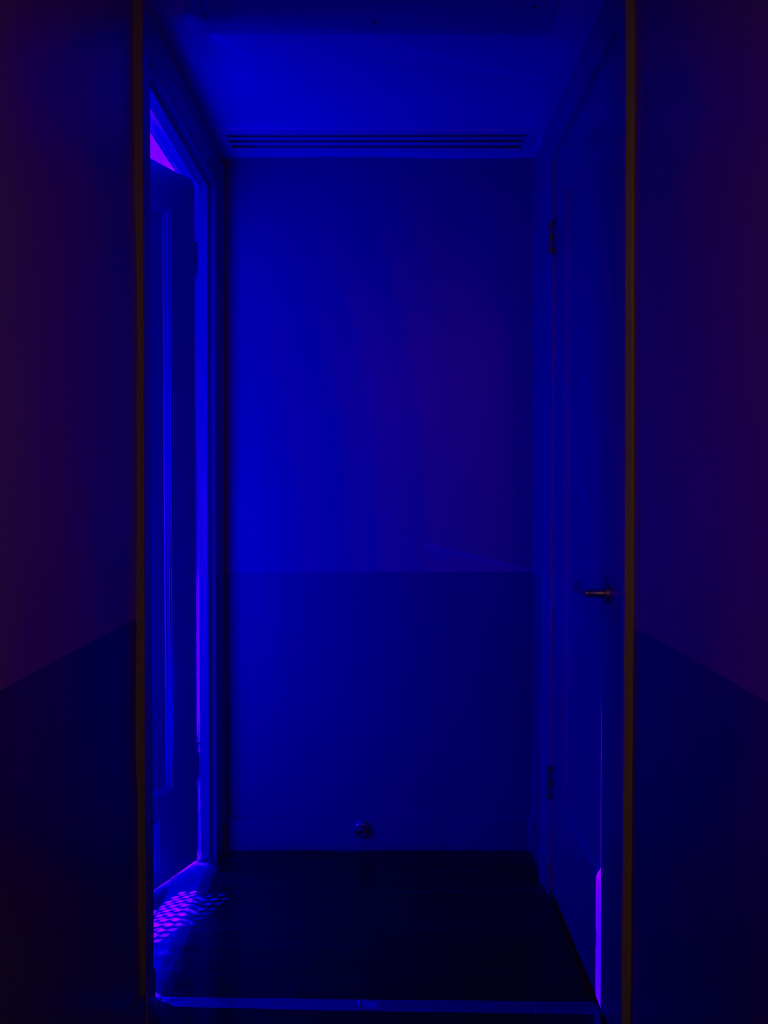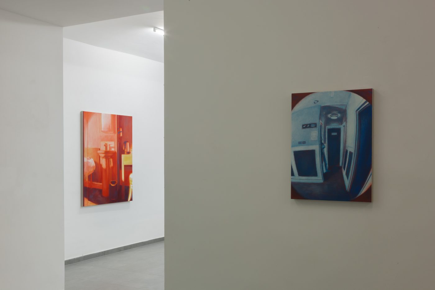 The work of Nana Wolke explores the nature of perception, focusing its attention on modes of apprehension of space and time. Her series of works usually begins on film-like sets, where the artist records the unfolding of staged situations and improvised actions occurring in spaces spanning social hierarchy. Wolke proceeds to assemble and edit both original and found footage to create distinctly monochromatic visual atmospheres and rhythms that she then translates into painting and sound installations. Using commonplace lighting to model space and generate the grain, textures and slippages of her images and sequences, Wolke utilizes a variety of devices chosen as much for their technical properties than for their social significance – e.g. CCTV equipment, home video camcorders, inventory cameras, intercom systems, etc. Considering the multiple viewpoints from which an action can be witnessed, Wolke’s work conjures a tension between observation and control, often inviting viewers to navigate environments that interrogate notions of access and inclusion – whether for economic, social, or security purposes. In so doing, Wolke reflects upon the conflation of desire and shame in contemporary modes of production and consumption of images and visual culture. By constantly confronting the logic of live actions, cinema and paint, Wolke ultimately seeks to analyze the progressive inextricability between actual and artificial realities.
