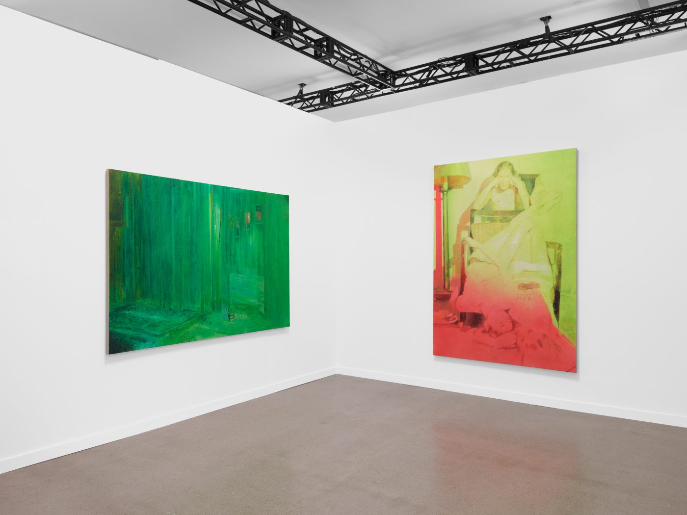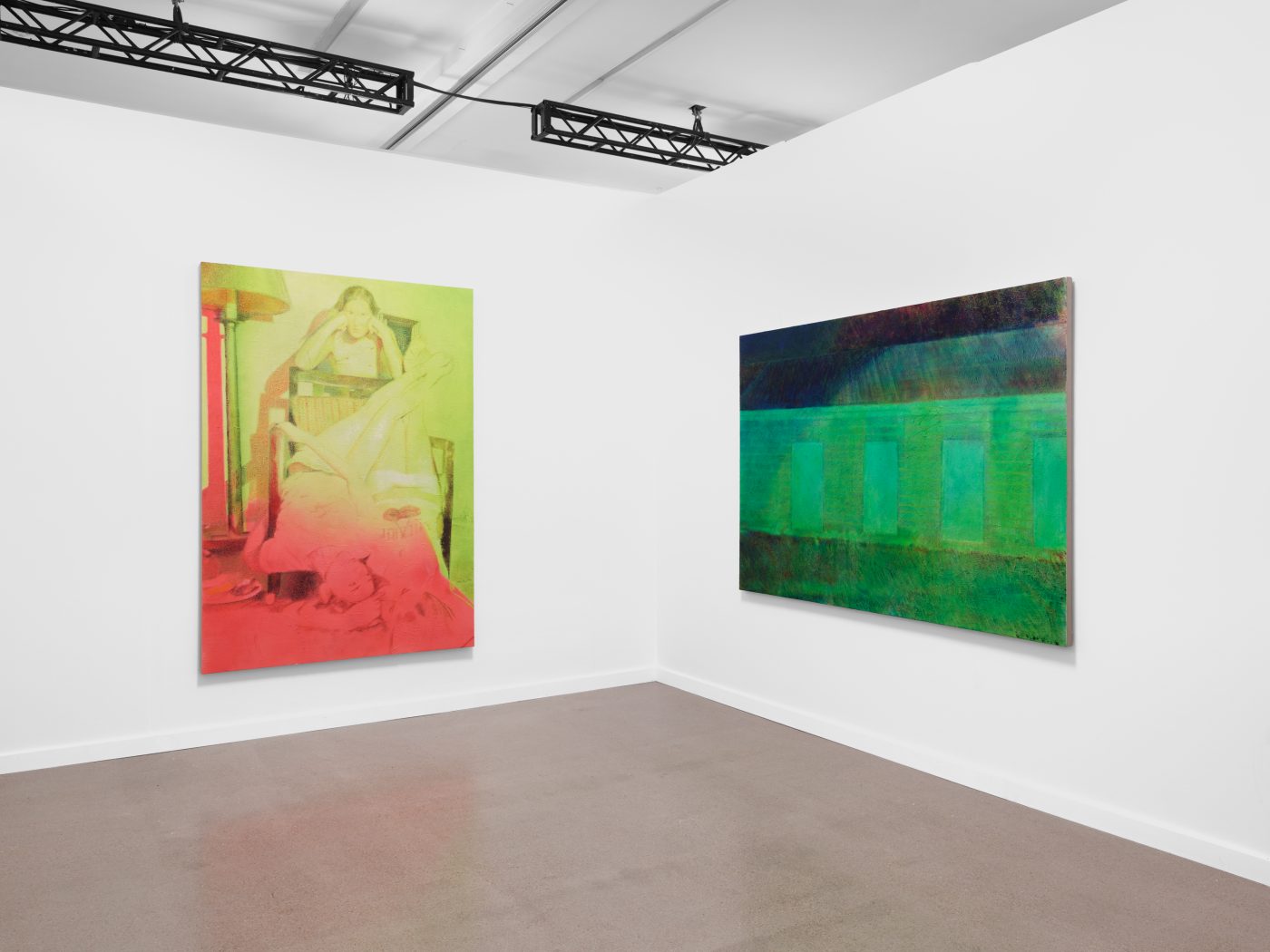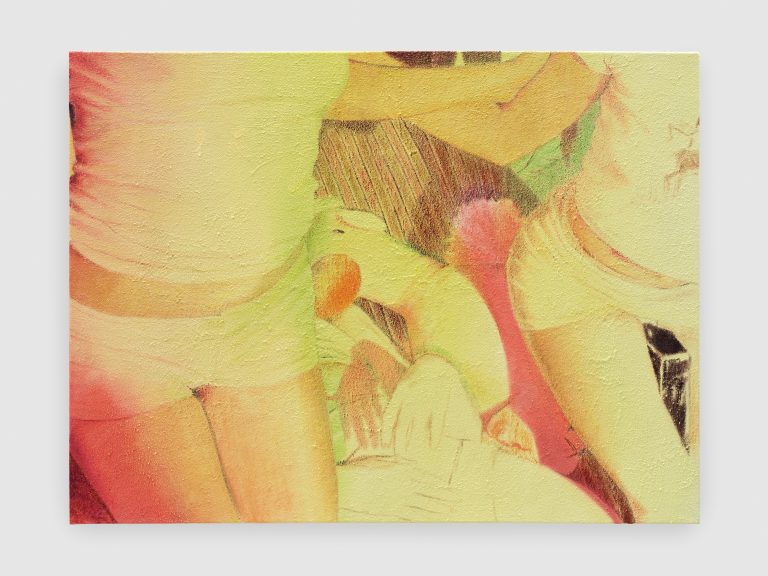 At Independent, Wolke presents a new series of paintings honing in on and observing the distortion of symbols associated with American suburbia through the prism of waning girlhood and newfound power in femininity, replete with Campbell’s soup cans, cowboy iconography, bananas, seduction, boredom and escapism. Painting in her signature style from self-captured low-fidelity footage, she directs her (and our) attention towards Upstate New York, depicting scenes soaked interferences to iconic late 90s films such as The Virgin Suicides, or American Beauty. Playing with the viewer’s position and perspective while moving from exterior to interior spaces, Wolke focuses her attention on unstable, transitory moments, capturing the impermanence of youth and the existential drama of life lived at the margins.