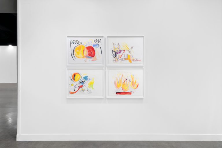 Tarek Lakhrissi’s practice spans poetry, film, sculpture, and installation, centering on queer and diasporic perspectives. His work borrows from literature and pop culture to discuss socio-political narratives, creating emotionally charged experiences. At MiArt, Lakhrissi will present a series of coloured drawings that mark a new phase in his artistic exploration—one that embraces a more physical and material approach. These intuitive, hand-made works feature alien and superhero-like characters, a pantheon of queer angels and demons whose horns and tails reflect his ongoing interest in fantasy and eroticism as pathways to transformation and liberation.